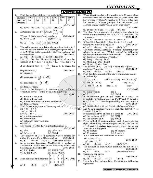 Previous Paper & Results (Jawaharlal Nehru University (JNU))